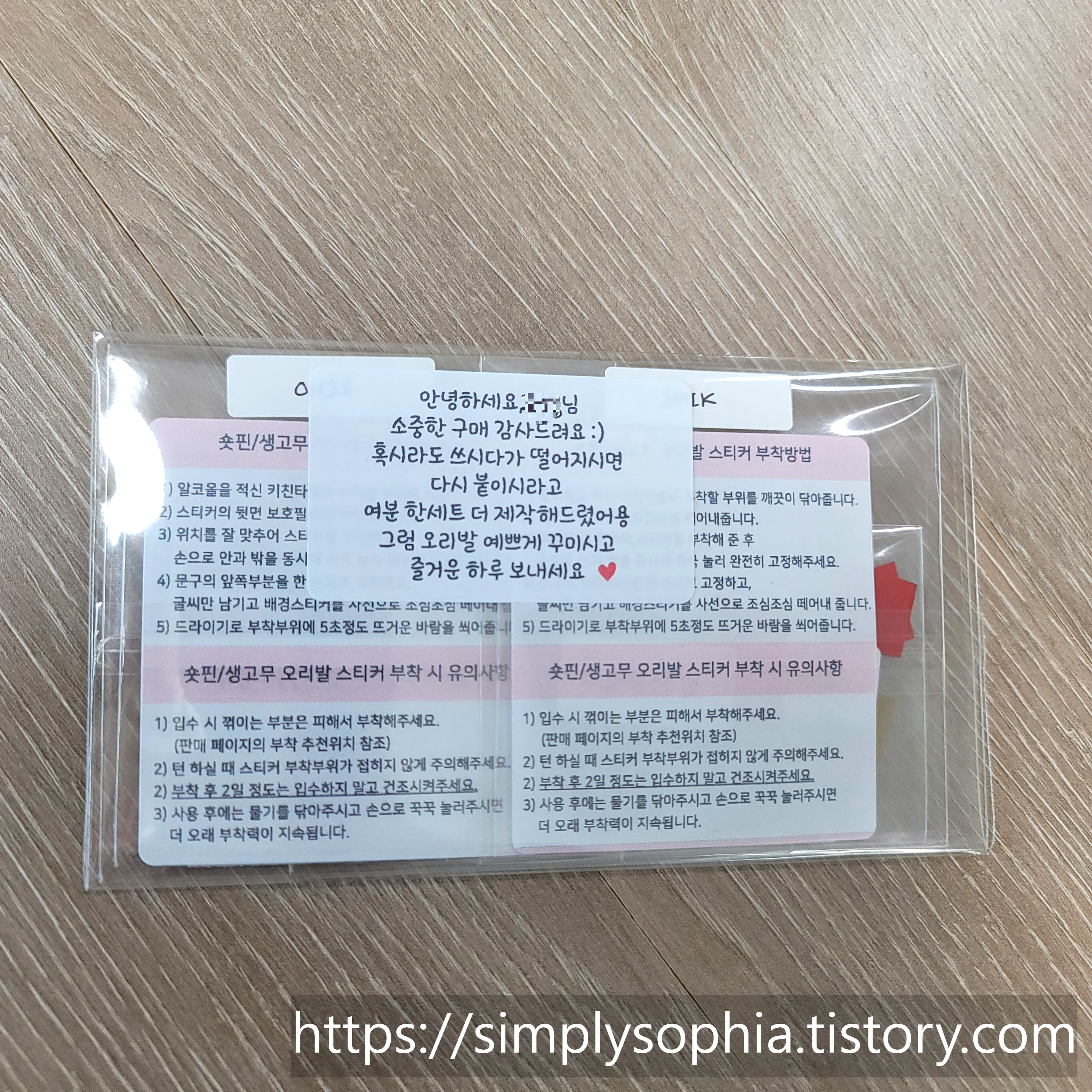 그리고 주문한 스티커를 꾹꾹 눌러주고